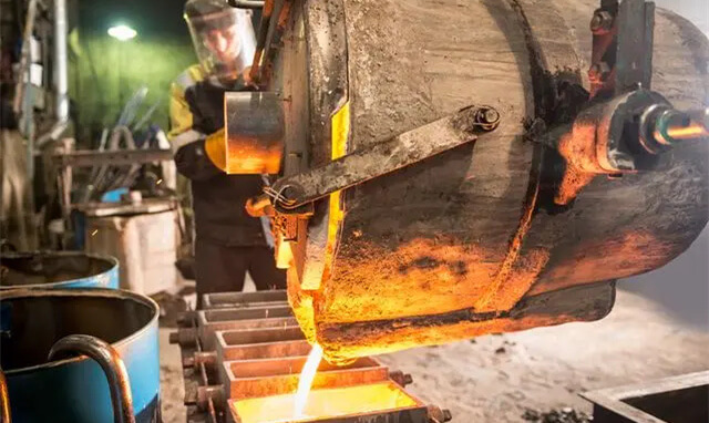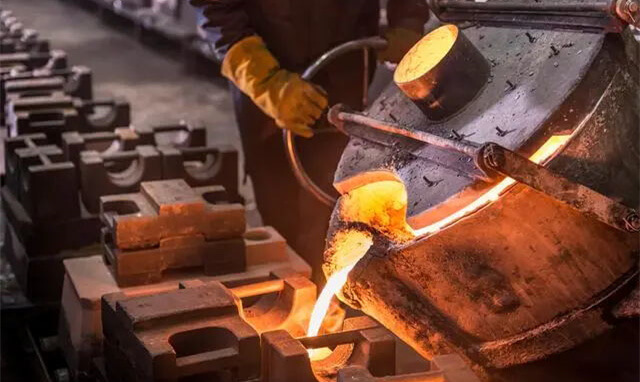 铸造的原理是将金属熔化成液体,然后浇注到有特定形状的型腔中,经过冷却凝固,清理处理后得到所需的铸件。